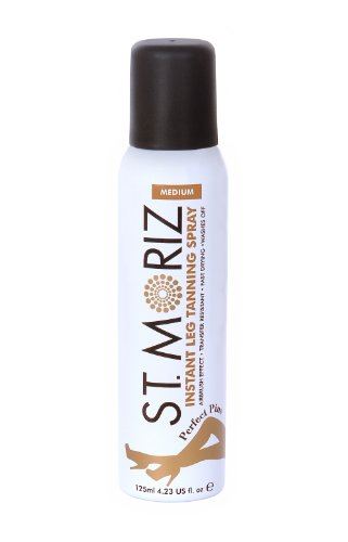 Colour: Medium. Airbrush Effect. Transfer Resistant. Fast Drying. Washes Off. Specially Created To Give You An Airbrush Effect, This Flawless Finish Helps Cover Veins, Blemishes And Imperfections, Whilst Giving You An Instant Colour Boost Ingredients Butane Propane Isobutane Cyclopentasiloxane Isopropyl Myristate Disteardimonium Hectorite Mica PEG 12-Dimethicone Propylene Carbonate Parfum (Fragrance) Coumarin Citronellol Alpha-Isomethyl Ionone Butylphenyl Methylpropional Eugenol CI 77891 CI77491 CI77492 CI77499 Directions Exfoliate and moisturise dry areas of the skin (i.e. knees, elbows, hands, ankles, feet and hairline) and allow to dry. Wear gloves or use a tanning applicator, it helps avoid coloured palms! Shake the can well before use. Spray Perfect Pins into your hand, or mitt and rub into your legs and feet, blending as you go. Allow 60 seconds to set before getting dressed. Made a mistake? No problem, simply wash off with soap, water and a washcloth and start again. Safety Warning This product does not contain a sunscreen and does not protect against sunburn. Repeated exposure of unportected skin whilst tanning may increase the risk of skin aging, skin cancer and other harmful effects to the skin, even if you do not burn. Do not use on damaged or broken skin. If skin irritation occursdiscontinue use. If product enters eyes rinse well with warm water. Suitable for all skin types. Just to be on the safe side we recommend that you patch test before using any tanning products. Keep out of reach of children. Pressurised Containter. Protect from sunlight. Do not expose to temperatures above 50 degrees celsius. Do not pierce or burn, even when empty. Do not spray onto a naked flame or any incandescent material. Avoid direct inhalation. Keep away from sources of ignition - no smoking. Box Contains 1 x St. Moriz Instant Leg Tanning Spray, Medium, 125ml Brand: St. Moriz | Colour: Medium | 125ml