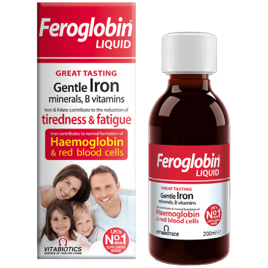 Vitabiotics Feroglobin-B12 iron supplement liquid comes with swiss alpine malt. It contributes to normal formation of haemoglobin and red blood cells. It includes iron, folate ans B12 which can contribute to the reduction of fatigue. It has delicious taste honey, malt orange which is gentle on the stomach. It is suitable for the whole family. It has no alcohol or artificial colours and not tested on animals.IndicationsCaution before taking Feroglobin-B12 Liquid: * Always read the product directions before use. * Do not exceed the recommended intake. * As with other food supplements seek professional advice before using if you are pregnant, breastfeeding or suffer from food allergies, and consult your doctor or pharmacist if you have an underlying medical condition (e.g. diabetes, epilepsy, hyperthyroidism), or if on medication. You should carefully read all product packaging and labels priIngredientsPurified Water, Raw Cane Sugar (Sucrose), Malt Extract (from Barley), Glucose Liquid (Sulphites), Honey, Lysine (HCI), Iron (Ferric Ammonium Citrate), Zinc Sulphate, Natural Source Colours: Mixed Carotene (Polysorbate 80, Sunflower Oil, Carotene, Mono & Diglycerides of Fatty Acids, Ascorbyl Pa Imitate, Antioxidant: DL-Alpha Tocopherol) and Beetroot Red (Beetroot Concentrate, Mono Propylene Glycol, Ascorbic Acid, Citric Acid), Vitamin C (Ascorbic Acid), Thickening Agent (Xanthan Gum), Niacin (Nicotinamide), Calcium Glycerophosphate, Thiamin (Vitamin B1 as Mononitrate), Natural Flavouring (Orange Ext), Acidity Regulator: Citric Acid, Vitamin B6 (Pyridoxine HCf), Preservative: Potassium Sorbate, Pantothenic Acid (D-Panthenol), Vitamin B2 (Riboflavin Sodium Phosphate), Copper Sulphate, Manganese Sulphate, Folic Acid (as Pteroylmonoglutamic Acid), Potassium Iodide, Vitamin B12 (Cyanocobalamin)DirectionsDirectionsAdults (Men and Women):1 teaspoonful 2 times daily.Children (1-3 Years): 1/2 a teaspoonful daily.Children (4-6 Years): 1/2 a teaspoonful twice daily.Children (7-12 Years): 1 teaspoonful 1-2 times daily.One teaspoonful = approx. 5mlDuring menstruation or pregnancy, one teaspoonful three times daily is recommended.Do not exceed the recommended intake.Feroglobin-B12 can be continued for as long as required.Shake well before useSafety WarningFood Supplement: As with other supplements seek professional advice before consuming if you are under medical supervision or suffer from food allergies. Food supplements must not replace a varied and balanced diet and a healthy lifestyle. This product contains iron, which if taken in excess may be harmful to very young children.Legal DisclaimerPLEASE NOTE THIS PRODUCT HAS HAD A PACKAGING CHANGE. THE ITEM RECEIVED IS EXACTLY THE SAME INGREDIENTS HOWEVER THE PICTURE ON THE PRODUCT HAS BEEN UPDATEDManufacturer Contact Information1 Apsley Way London Nw2 7Hf With Swiss Alphine malt | Iron contributes to normal formation of haemoglobin & red blood cells | Includes iron, folate & B12 which can contribute to the reduction of fatigue | Delicious taste honey, malt orange | Gentle on the stomach | Delicious taste with natural fruit extracts, honey and Swiss alpine malt | Suitable for the whole family | Britain's leading supplements for specific life stages | The Queen's Awards for Enterprise 2008 | With B-complex vitamins to help maintain normal energy release & vitality | No lactose, alcohol, fat or yeast | Not tested on animals | No artificial colours | Vegetarian Society approved