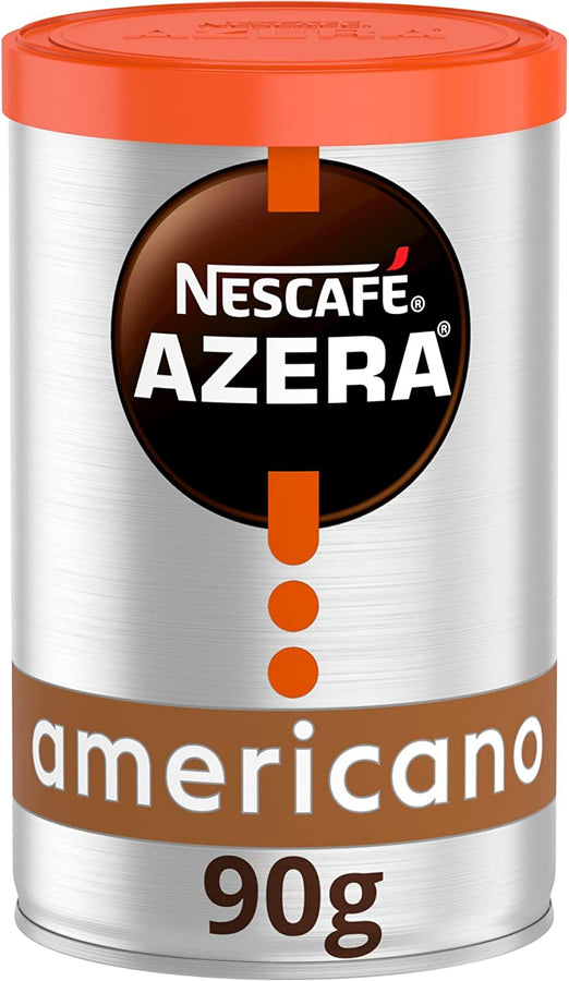 Nescafe Azera AMERICANO  is a full and rich barista style instant coffee. A bold blend of instant coffee and finely ground, roasted coffee beans. This balanced dark fusion has a vibrant flavour, an intense fullness and an irresistible layer of velvety coffee crema.Be your own barista. You can enjoy this tasteful barista style blend, Nescafe has selected the fine, high quality coffee beans to make it. Nescafe's dedicated team of roasters, roast the beans and then finely ground them, before carefully blending with instant coffee. Simply add water and be your own barista.IngredientsSoluble Coffee, Roast and Ground Coffee (5%)Directions1) Add 1 heaped tsp (1.8g) into your favourite mug. 2) Pour in 200ml of hot (but not boiling) water. 3) Enjoy your barista-style coffee. Makes 55 mugs* *One mug = 1 tsp (1.8g) + 200ml hot waterManufacturer Contact InformationPO Box 207, York, YO91 1XY, UK. Nestle Ireland, 3030 Lake Drive, City West, Dublin 24. A bold blend of instant coffee and finely ground coffee beans, with an intense aroma | This balanced dark fusion delivers a vibrant flavour with an irresistible velvety coffee crema | Full and Rich