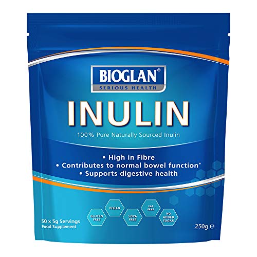 Bioglan Inulin Powder 250gBioglan Inulin promotes digestive wellbeing naturally. It is rich in fibre which contributes to normal bowel function by increasing stool frequency. It is easily dissolvable in liquid and can be incorporated into your everyday diet without any fuss - by adding to water, juice, smoothies, cereal, baking or other foods you enjoy.IngredientsNATIVE CHICORY (CICHORIUM INTYBUS). INULIN CONTAINS NATURALLY OCCURRING SUGARS.DirectionsTake 1 teaspoon (5g) up to 3 times daily.Box Contains250g powder B01LWV9LNO