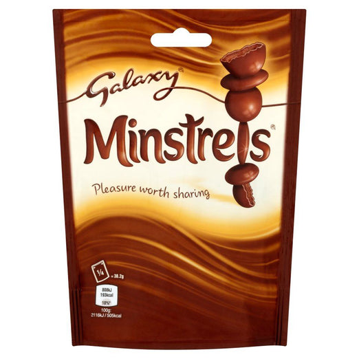 Galaxy Minstrels Chocolate Pouch, 125g . Delicious Galaxy Smooth Milk Chocolate covered in a sugar shell Smooth and creamy Galaxy chocolate in crispy chocolate shells | Galaxy Minstrels are the perfect way to enjoy your favourite chocolate | Indulge yourself after a long day or surprise your friends with this delicious chocolate treat | These Galaxy milk chocolate hard shelled buttons are perfect as movie night snacks, birthday party treats or for on the go simple delights | True Bliss: A 125 g chocolate pouch, perfect for gifting or sharing