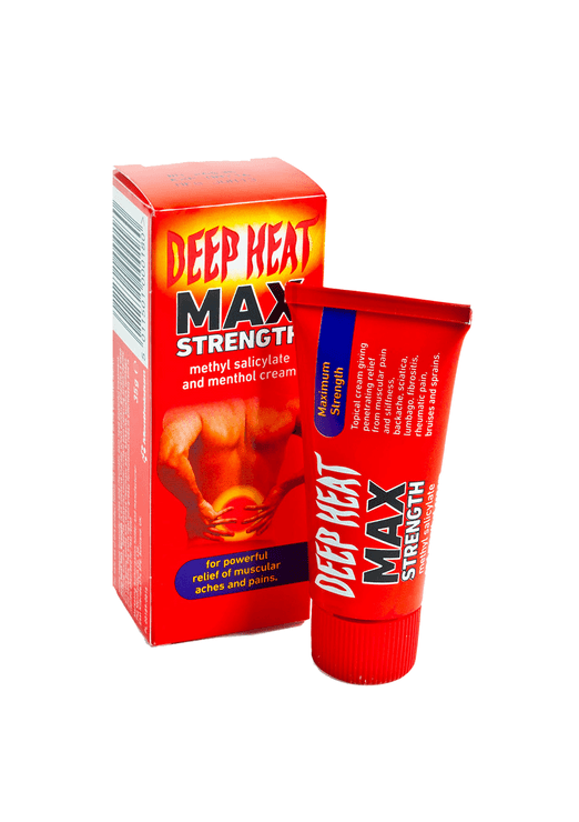 Maximum strength for powerful relief of muscular aches and pains. Methyl salicylate and menthol cream. Some nagging muscular aches and rheumatic pain need powerful treatment. Deep Heat Max Strength is an intensive therapy which quickly generates a deep soothing warmth. Feel its powerful counter-irritant pain-relieving action rapidly but very gently soothe and relieve rheumatic pain, backache, sciatica, lumbago and fibrositis. The extra light non-greasy formulation rubs in effortlessly and is rapidly absorbed for fast relief. Uses: Deep Heat Max Strength is for the relief of muscular pains and stiffness including rheumatic pain, backache and lumbago, sciatica, fibrositis, bruises and sprains.IngredientsActive Ingredients: Methyl Salicylate 30.00% w/w, Menthol 8.00% w/w,Also contains: Sorbitan Stearate, Polyoxyethylene Hexadecyl Ether, Glyceryl Stearate, Sodium Lauryl Sulphate, Poloxamer 407,Dowicil 200, Water