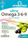 Vitabiotics Ultra Omega 3 Capsuleshave been produced to the highest quality and purity standards using premium grade fish oils to provide a rich source of the essential fatty acids DHA (Docosahexaenoic acid) and EPA (Eicosapentaenoic acid) to help maintain health and wellbeing.These 3 in 1 capsule combines Omega-3 from fish oil, Omega-6 from Blackcurrant and Pumpkin Seed Oil, and Omega-9 from Olive Oil.