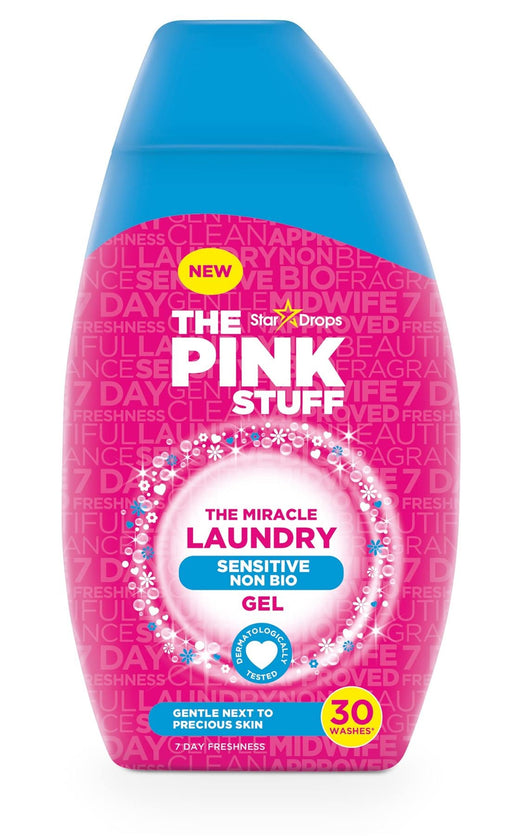 The Pink Stuff - The Miracle Laundry Non Bio Gel is Midwife Approved and Dermatoligally proven to be gentle next to your skin. Carefully formulated to remove stains whilst our fresh and fruity fragrance infuses your clothes for a brilliant clean and 7 days of freshness. Our concentrated gel gets to work straight away, for a quick wash at low temperatures. Simply use the convenient cap and pop straight into the drum on top of your wash load. Say goodbye to stubborn stains and hello to lasting freshness.IngredientsQuartz, Aqua, Soap, Sodium, Carbonate, Sodium, Silicate, Sodium, Bicarbonate, Glycerin, Parfum, Laurylamine, Dipropylenediamine, Acid, Red, 52, Dimethicone.