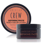 DEFINING PASTE Medium hold with low shine. For added texture or increased definition. Beeswax provides a natural, pliable hold for various lengths. Wax-like consistency provides a matte finish while still remaining easy to distribute through hair. Defining Paste is similar to Fiber in texture and effects but is easier to use and distribute through hair. It can also be used in hair that's beyond 2'' in length. Application: Emulsify between palms and work a small amount evenly through damp or dry hair and style as desired. Features: Lanolin, Beeswax, Glycerin. Benefits: A rich emollient with moisturizing properties, provides a pliable hold, gives hair a thicker and fuller appearance. Ingredients Fragrance (parfum), benzyl benzoate, benzyl salicylate, citral, eugenol, butylphenyl methylpropional, limonene, linalool, hydroxyisohexyl 3-cyclohexene carboxaldehyde,extract, symphytum officinale, chondrus crispus (carrageenan) extract, sambucus nigra flower extract, echinacea angustifolia extract, triethanolamine, tetrasodium edta,tree) leaf oil, acrylates/c10-30 alkyl acrylate crosspolymer, bentonite, benzophenone-3, camellia sinensis leaf extract, salvia hispanica seed extract, urtica dioica Directions Emulsify between palms and work a small amount evenly through damp or dry hair and style as desired Safety Warning For external use only. Avoid direct contact with eyes. In case of eye contact, rinse immediately with water. Box Contains American Crew Defining Paste 3.0 oz