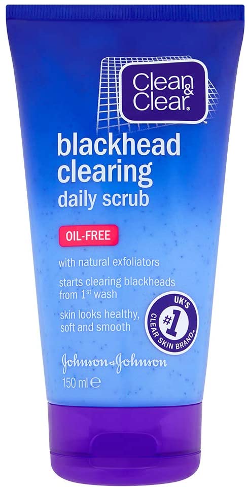 Clean & Clear Blackhead Clearing Daily Scrub 150ml. Oil-free See fewer blackheads after 1 wash Lifts away dirt and oil Clean & Clear Blackhead Clearing Scrub contains a unique active Quick Break-up Complex to help fight blackheads from day 1. The special exfoliating micro-beads immediately peel away dead cells to unclog pores. The blackhead fighting ingredient penetrates the pores to help clear them from impurities and prevent blackheads from forming. With soothing actives, this scrub is gentle enough to use everyday to help keep your skin clean and clearer of blackheads, without irritating or over-drying UK's #1 Clear Skin Brand* *Total CLEAN & CLEAR Unit Sales, IRI Data 52 w/e 26/01/13.Directions: Apply to wet face and gently massage avoiding eye area. Rinse thoroughly. To see results from day 1, use morning and evening.