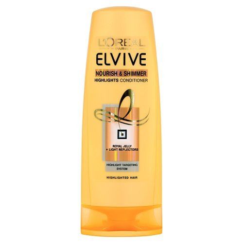 L'Oreal Paris Elvive Nourish and Shimmer Highlights Conditioner is enriched with royal jelly, a rare concentration of proteins and amino acids. The honey scented formula instantly delivers targeted care to damaged or dried out areas, Nourishing highlights to transform their surface for a rich and smooth feel. It has light reflectors formula which envelops the hair fibre, to protect it against external aggressions and to enhance the brightness of your highlights. Directions Work through the lengths of your hair, right to the tips and then rinse. For best results use after nourish and shimmer shampoo and for even more touchably soft hair, try nourish and shimmer masque (sold separately). Safety Warning Keep out of the reach of children. In case of contact with eyes, rinse them immediately. Provides sumptuous nourishment to the hair | Contains royal jelly and light reflectors | Delivers care to damaged or dried out areas | The honey scented formula instantly delivers targeted care to damaged or dried out areas | Nourishing highlights to transform their surface for a rich and smooth feel