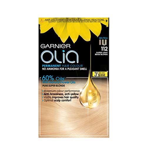 Product DescriptionDiscover Garnier Olia Permanent No Ammonia Hair Dye. 60 Percent oil powered hair dye with up to 100 Percent grey coverage. Maximum colour performance, for long-lasting at home hair colour results. On grey hair, colour will appear lighter than on non-grey hair. Choosing ideal shade: hair dye colour result will vary depending on natural hair colour - check the back of pack. If are deciding between two shades, always choose the lighter. Remember to always do patch test 48 hours before colouring hair at home. Top tips: Use an old towel as hair colour may stain it. Apply moisturising cream to hairline to avoid staining. Garnier know that oil can do much more than just condition hair. When concentrated at the heart of the Olia permanent blonde hair dye formula, oil maximises the blonde hair colour result. Garnier Olia permanent hair dye is a 60 Percent oil-powered formula, with natural flower oils and ammonia free for a pleasant scent. Garnier at home hair dye visibly improves the quality of hair, for 3 x shiner** and 35 Percent smoother hair**. Olia home hair colour will also provide maximum colour performance for lavish, vivid and long-lasting blonde hair. Plus, Olia permanent hair colour has a distinct sensorial application and optimal scalp comfort with Garnier non-drip smooth velvety texture of the colourant cream. ** Instrumental test vs before and after colouration.How to find the ideal blonde shade for:Have ever wondered what the hair colour numbers mean? The first number of a Hair Colour is how Light or Dark the blonde hair dye will be, for example blonde shades range from 7, Dark Blonde to 10, Very Light Blonde. The second number is the reflect which can be Natural (.0), Warm (.3, .4, .5, .6) or Cool (.1, .2). For example, 7.0 is a Natural Dark Blonde, 7.3 is a Golden Dark Blonde and 10.1 is a Very Light Ash Blonde. Always check the back of pack to see if it is the right shade for. If have dark hair and want to dye hair blonde, will need to bleach first.Ingredients1189129 - Colourant Cream: Paraffinum Liquidum/Mineral Oil, Aqua/Water, Ethanolamine, Decyl Glucoside, Sodium Lauryl Sulfate, PEG-40 Hydrogenated Castor Oil, m-Aminophenol, 5-Amino-6-Chloro-o-Cresol, Ascorbic Acid, Tocopherol, Hydroxypropyl Guar, Sodium Metabisulfite, Thioglycerin, Helianthus Annuus Seed Oil/Sunflower Seed Oil, Toluene-2,5-Diamine, Limnanthes Alba Seed Oil/Meadowfoam Seed Oil, Camellia Oleifera Seed Oil, Disodium Cocoamphodiacetate, Passiflora Incarnata Seed Oil, Resorcinol, EDTA, Parfum/Fragrance - C181977/1, 1071243 - Developer Cream: Aqua/Water, Paraffinum Liquidum/Mineral Oil, Hydrogen Peroxide, Cetearyl Alcohol, Steareth-20, PEG-4 Rapeseedamide, Tocopherol, Sodium Stannate, Polyquaternium-6, Pentasodium Pentetate, Phosphoric Acid, Tetrasodium Pyrophosphate, Hexadimethrine Chloride -C201465/11119728 A - Silk & Shine Multi-Application Conditioner: Aqua/Water, Cetearyl Alcohol, Behentrimonium Chloride, Cetyl Esters, Tocopherol, Trideceth-6, Chlorhexidine Digluconate, Helianthus Annuus Seed Oil/Sunflower Seed Oil, Camellia Oleifera Seed Oil, Amodimethicone, Isopropyl Alcohol, Citric Acid, Cetrimonium Chloride, Parfum/Fragrance - C179224/1, Please check back of pack for latest ingredients list.DirectionsHow to dye your hair at home with Garnier Olia No Ammonia Permanent Hair Dye: Always do a patch test 48 hours in advance of using any home hair dye products. Please always refer to the product for full safety instructions. Top tips for home hair dye: Use an old towel as permanent hair dye may stain it. Apply moisturising cream to your hairline to avoid staining from the permanent hair dye. Hair Dye can only lighten your natural hair colour 1 to 2 levels - check the back of pack to see if it is the right hair colour shade for you. If you have long or thick hair, use two hair dye boxes. 1. Start by putting on gloves and instantly mix the colour cream and the developer cream in the applicator bottle. Shake well to mi