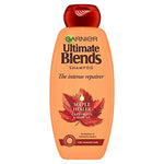 Garnier Ultimate Blends Maple Healer Maple & Castor Oil Shampoo for Damaged Hair 360ml Garnier Ultimate Blends Maple Sap and Castor Oil Range for Very Damaged Hair. Ultimate Blends Maple Healer: our ultimate damaged hair care for naturally beautiful hair. Leaves hair feeling stronger and more resistant*, as if repaired. (*Instrumental test: Measured as resistance to breakage after application of shampoo and conditioner onto bleached hair.) Very damaged hair needs extra love and care. Maple sap extract from the wilds of Canada is blended with nourishing castor oil to target signs of damaged hair. The result is a deliciously-scented formula which leaves hair easier to manage and feeling revitalised from root to tip Ingredients Aqua / Water, Sodium Laureth Sulfate, Cocamidopropyl Betaine, Sodium Lauryl Sulfate, Glycerin, Glycol Distearate, Amodimethicone, Sodium Chloride, Ci 19140 / Yellow 5, Ci 14700 / Red 4, Guar Hydroxypropyltrimonium Chloride, Coco-betaine, Ricinus Communis Oil / Castor Seed Oil, Sodium Benzoate, Sodium Hydroxide, Acer Saccharum Extract / Sugar Maple Extract, Ppg-5-ceteth-20, Trideceth-6, Salicylic Acid, Fumaric Acid, Benzyl Salicylate, Linalool, Benzyl Alcohol, Carbomer, Caramel, Cetrimonium Chloride, Citric Acid, Prunus Amygdalus Dulcis Oil / Sweet Almond Oil, Hexyl Cinnamal, Parfum / Fragrance, Please Check Back Of Pack For Up To Date Ingredients Manufacturer Contact Information Unit 2 Fraser Place Trafford Park Manchester M17 1Ed