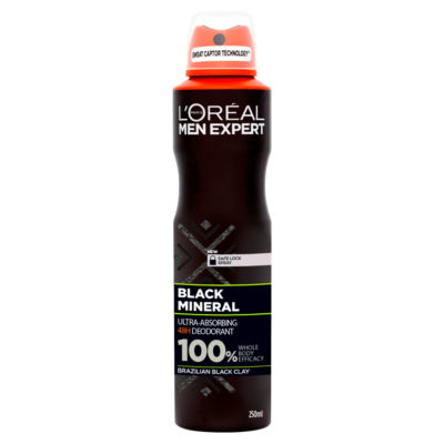 Men Expert s first body spray powered by natural origin Brazilian Black Clay for a double efficacy deodorant for the whole body