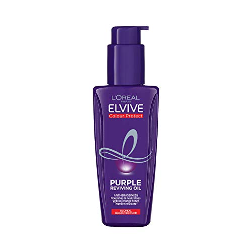 Blonde or bleached hair in need of a refresh? Introducing Purple Reviving Oil from Elvive Colour Protect, Britain's number 1 for coloured hair*. Highlighted brunette, blonde, and grey hair can become yellow and brassy over time. This leave-in hair oil treatment transforms dry, brassy hair! The unique, caring Purple Oil formula helps neutralise yellow/orange tones whilst leaving hair feeling soft, nourished and revived. How does it work? Purple colour is the opposite to yellow on the colour wheel, the purple within the Purple Oil formula helps neutralise yellow tones. The perfect finishing touch to complete your anti-brassiness routine for an even brighter blonde. For best results, use after Elvive Purple Shampoo and Conditioner or Intensive Mask. *2020 Nielsen data, value & units, Haircare (client defined) 52 w/e 21/03/20 GB Total Coverage. Ingredients 1241748 C - INGREDIENTS: ISODODECANE ? AQUA / WATER ? DIPROPYLENE GLYCOL ? DIMETHICONE ? ALCOHOL DENAT. ?DIMETHICONOL ? GLYCERIN ? PEG-14 DIMETHICONE ?HYDROXYETHYL UREA ? CI 60730 / ACID VIOLET 43 ? CI 45100 /ACID RED 52 ? C13-14 ISOPARAFFIN ? PHENOXYETHANOL ? PEG-60HYDROGENATED CASTOR OIL ? ETHYLHEXYL SALICYLATE ?POLYACRYLAMIDE ? LIMONENE ? LINALOOL ? BENZYL SALICYLATE ?BENZYL ALCOHOL ? PENTAERYTHRITYL TETRA-DI-T-BUTYLHYDROXYHYDROCINNAMATE ? PROPYLENE GLYCOL ?ISOEUGENOL ? ALPHA-ISOMETHYL IONONE ? GERANIOL ?CITRONELLOL ? LAURETH-7 ? COUMARIN ? HEXYL CINNAMAL ?AMYL CINNAMAL ? PARFUM / FRAGRANCE. (F.I.L. C264088/1).