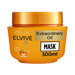 Mask has a technology in conjunction with the shampoo for the driest hair. The selection of luxurious flower oily extracts conditions. The mask helps bring more conditioning and shine to the dry tips of your hair. Nourishes dry hair right from the scalp and is the perfect balance of feeling light on the roots and nourishing on the ends. This transparent formula will leave your hair feeling beautifully nourished, soft and supple. Ingredients Aqua / Water ,Cetearyl Alcohol,Paraffinum Liquidum / Mineral Oil,Dipalmitoylethyl Hydroxyethylmonium Methosulfate,Cetyl Esters,CI 77891 / Titanium Dioxide ,CI 77491 / Iron Oxides,CI 15985 / Yellow 6,CI 19140 / yellow 5 ,Chamomilla Recutita Extract / Matricaria Flower Extract,Mica,Cocos Nucifera Oil / Coconut Oil,Trideceth-6,Chlorhexidine Digluconate,Helianthus Annuus Seed Oil / Sunflower Seed Oil,Nelumbium Speciosum Extract / Nelumbium Speciosum Flower Extract,Linum Usitatissimum Flower Extract ,Amodimethicone,Caprylyl Glycol,Caprylic/Capric Triglyceride,Caramel,Gardenia Tahitensis Flower Extract,Rosa Canina Flower Extract,Bisabolol,Cetrimonium Chloride,BHT,Citric Acid,Glycine Soja Oil / Soybean Oil,Parfum / Fragrance,Please check back of pack for up to date ingredients Directions For best results, use after Extraordinary Oil Shampoo. Squeeze out excess moisture and apply, concentrating on the lengths and ends. Leave in for 2-3 minutes. Rinses out easily.In case of contact with eyes, rinse them immediately. Box Contains 1 x L'Oreal Paris Elvive Extraordinary Oil Nourishing Buttery mask, 300ml