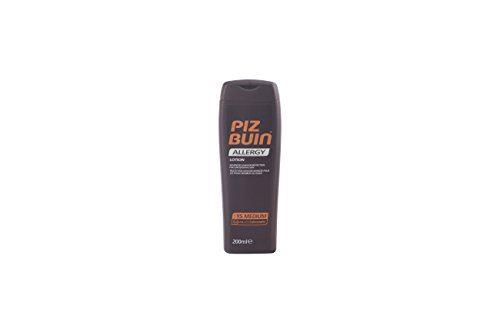 Piz Buin allergy lotion SPF 15 medium protection specially developed with dermatologists to protect sun-sensitive skin. PIZ BUIN Allergy Lotion combines advanced UVA/UVB sun filters and Calmanelle- a shield complex proven to help strengthen skin's resilience. Formulated with a powerful anti-oxidant, Calmanelle reinforces cell defence against UV rays and helps increase skin cell tolerance to the sun. The lotion provides hours of miniaturisation to soothe the skin and help prevent peeling. In Vitro Tested. Apply generously before sun exposure. Full body application - three tablespoons. Reducing this quantity lowers the level of protection significantly. Reapply frequently, especially after sweating, swimming or towelling. Avoid midday sun. Volume: 200 ml. Ingredients Aqua C12-15 Alkyl Benzoate Cyclopentasiloxane VP / Eicosene Copolymer Ethylhexyl Stearate Butylene Glycol Ethylhexyl Methoxycinnamate 4-Methylbenzylidene Camphor Glycerin Dimethicone Glyceryl Stearate PEG-100 Stearate Methylene Bis-Benzotriazolyl Tetramethylbutylphenol Bis-Ethylhexyloxyphenol Methoxyphenyl Triazine Glyceryl Myristate Potassium Cetyl Phosphate Stearyl Dimethicone Panthenol Butyrospermum Parkii Prunus Dulcis Caprylyl Glycol Aluminum Starch Octenylsuccinate Xanthan Gum Cetearyl Alcohol Decyl Glucoside Ammonium Polyacrylate Isohexadecane PEG-40 Castor Oil Disodium EDTA Tocopheryl Acetate Phenoxyethanol Methylparaben Propylparaben Parfum - [FPT 0918] Directions Apply 20 minutes before sun exposure. Reapply frequently. Avoid intense midday sun. Safety Warning Avoid midday sun and staying too long in the sun, even while using sunscreens. Keep babies and children out of direct sunlight. Box Contains 1 X 200ml bottle Manufacturer Contact Information (UK) Johnson & Johnson Ltd, Maidenhead, SL6 3UG, UK. (IRL) Johnson & Johnson, Tallaght, Dublin 24. Advanced UVA/UVB protection for sun-sensitive skin | Water-resistant | Get the most out of life in the sun safely | Dermatologically tested | Volume: 200 ml