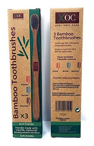 Bamboo Toothbrush -Eco Friendly - 3X 100% Natural Biodegradable with Soft bristles - BPA Free