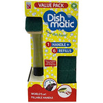 Dishmatic Value Pack Kit - 1x Refillable Washing-Up Liquid Dispensing Handle with 6X Replaceable General-Purpose Sponge Heads - Antibacterial Kitchen Washing-Up Handle with Easy-Grip Handle