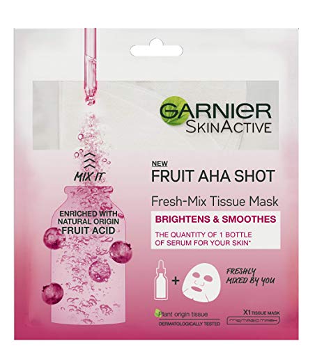 Garnier Tissue Mask, Hydrating, Brightening, Smoothing Fresh-Mix Face Sheet Mask with Fruit AHA Shot