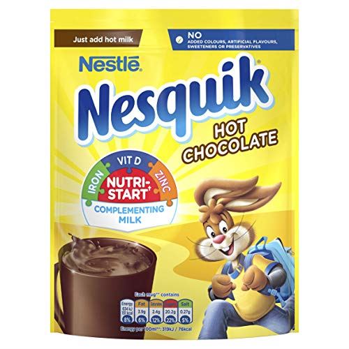 Nesquik Hot Chocolate Drink Mix fortified with vitamins and minerals for milk. It is ideal for a great start to the day and as part of a balanced diet. Zinc...