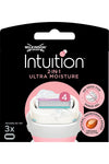 WILKINSON SWORD - Intuition Ultra Moisture For Women | No Shave Gel Needed | 3 x Razor Blade Refills